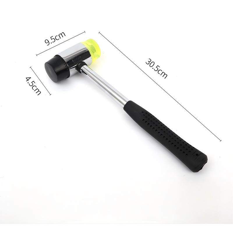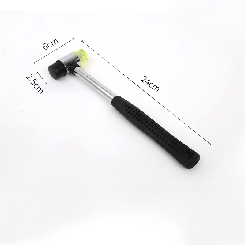 4.Size and Package Included: In the pack you will get 1 rubber hammer mallet which is elegant design and ergonomic handle design. There are two replaceable plastic and nylon hammer head. This rubber mallet small minature hammer has length of 9.5 inches and 2.4 inches width.